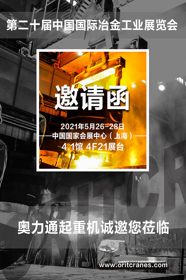 YABO鸭脖诚邀您第二十届中国国际冶金工业展览会,上海起重机,冶金起重机,欧式冶金卷扬,钢包起重机,龙门吊,欧式双梁桥式起重机,起重设备,单梁式起重机厂家,天车起重机,起重机厂家,起重机公司,起重设备生产厂家,防爆单梁起重机厂家,双梁桥式起重机。