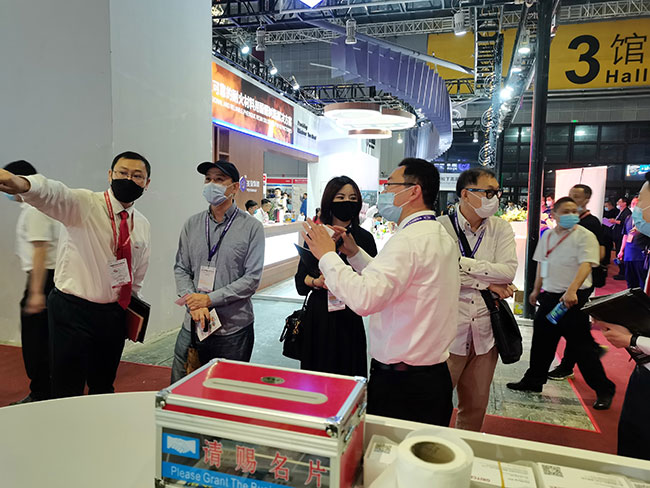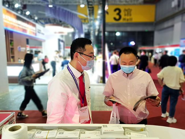 展会现场,YABO鸭脖销售经理热力十足,雄心勃勃,对每一位客户进行专业讲解。